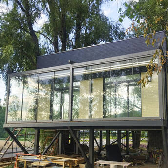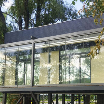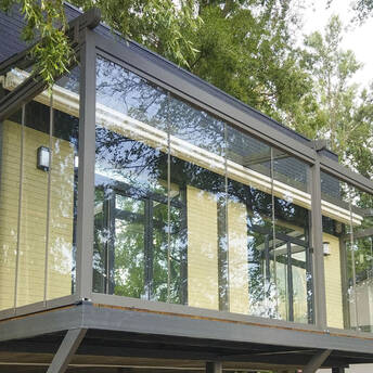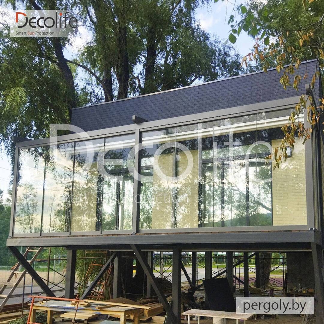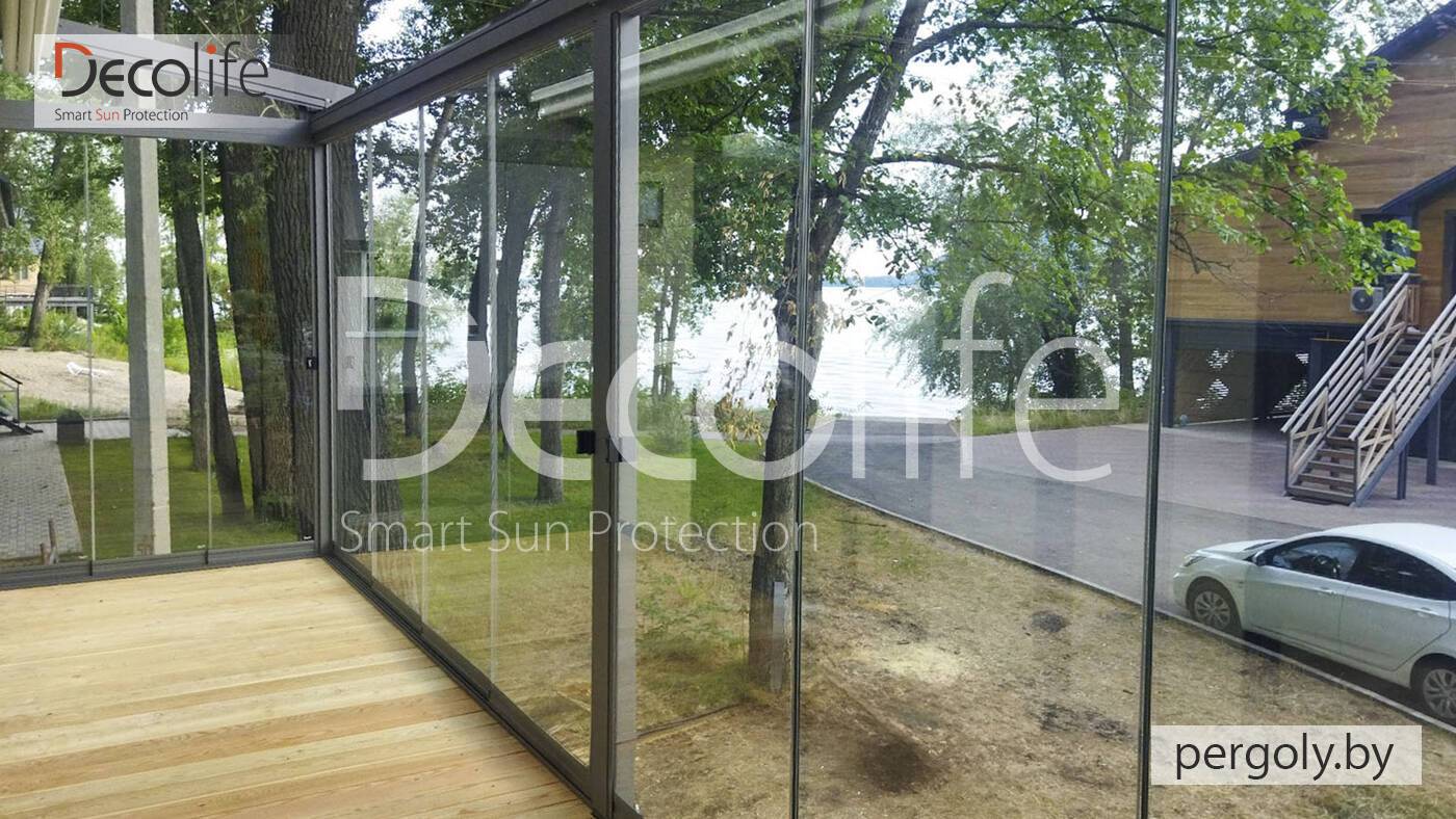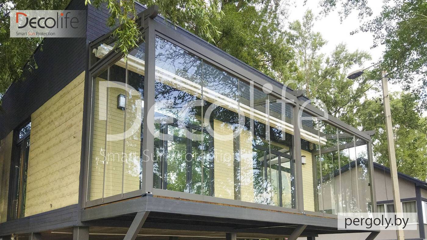 Пергола тентовая Decolife Solo Project + безрамное остекление S150