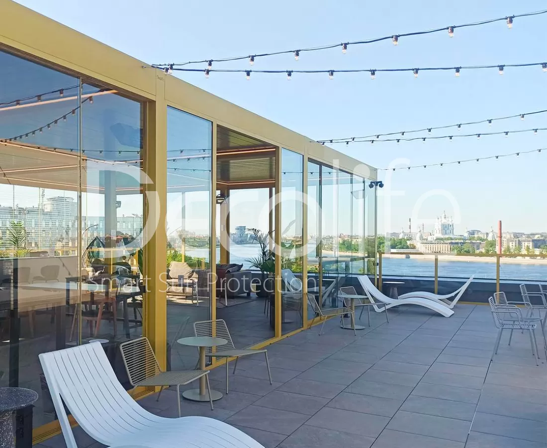 Пергола Decolife B700-25С + остекление FC58, S200 - Лаунж зона "Яндекс", БЦ "Феррум"